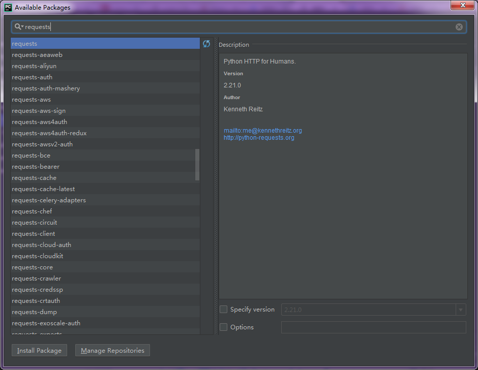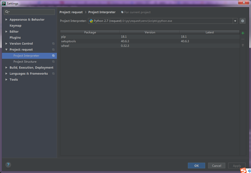 创建完成后可以在项目中安装requests库,file-settings打开如下界面