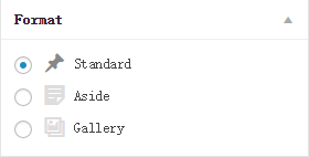 添加上面的代码后,发布文章时就可以选择aside和gallery类型了。要添加其他类型只需将post format添加到上述数组中即可。
