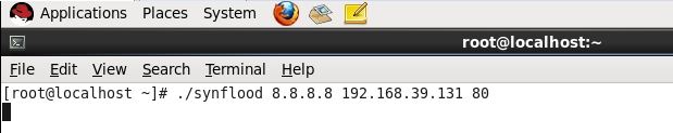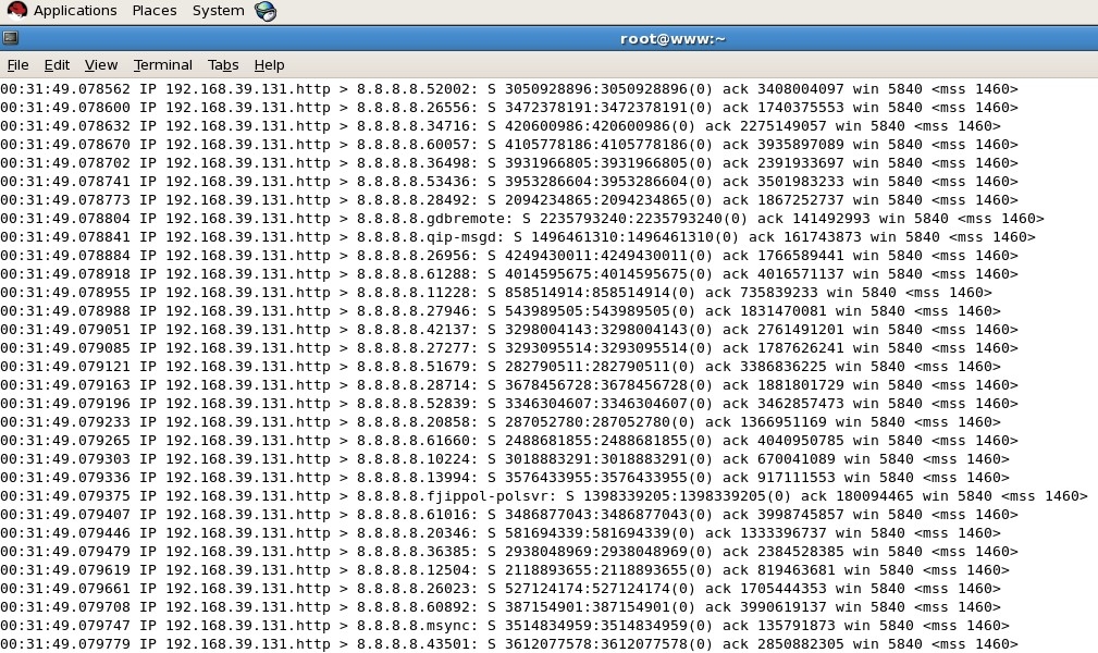 在Host A上执行***程序,伪装源IP成8.8.8.8(google DNS),目标地址192.168.39.131的80端口