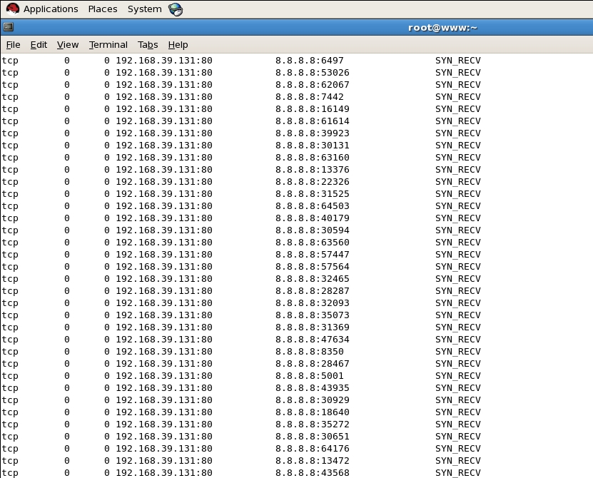 SYN flood***是一种典型的DDos***。检测SYN***非常的方便,当你在服务器上看到大量的半连接状态时,特别是源IP地址是随机的,基本上可以断定这是一次SYN***.