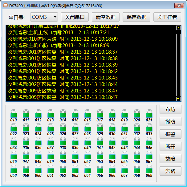 实现功能:主机布防撤防,防区故障断开旁路报警等