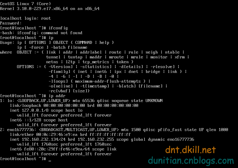ifconfig: command not found(CentOS专版,其他的可以参考)http://www.cnblogs.com/dunitian/p/4974761.html