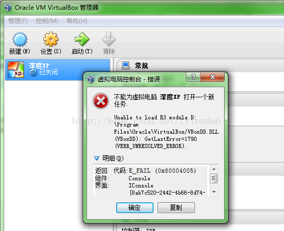 刚开始,按照上面的错误指示去找VirtualBox的安装目录下的VBoxDD.DLL,这个文件是存在的(说明不是这里的问题)