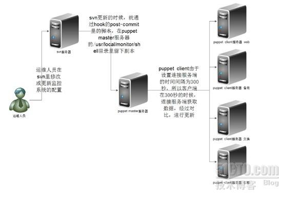 这个path就是puppet master的配置文件里从哪里获得需要给客户端传输程序的地址,同时也是svn的hook里post-commit更新的地址。