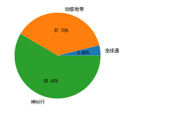 plt.pie(gb['用户数'], labels=gb['通信品牌'], autopct='%.2f%%');