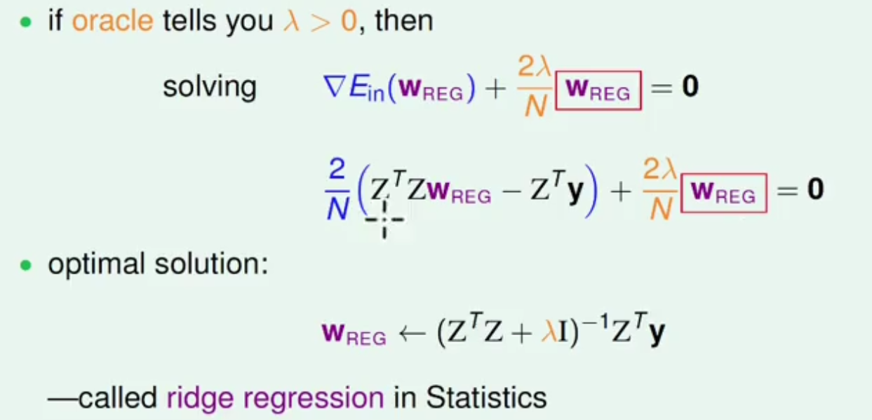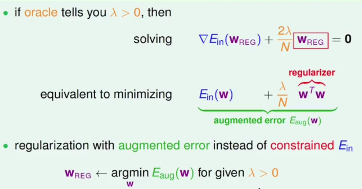 此时需要找到一个正规化的假设的权重WREG:optimal solution from regularized hypothesis set H(c)