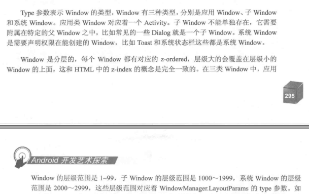 在此之前我们要先猜想一波,Activity是以什么形式显示的呢?我们知道Windows有Window(窗口)这个概念,其实在Android中也有这个概念,与Windows的窗口有着类似的含义。Android中的所有视图,不管是Activity,Dialog,还是Toast都是附加在Window上展示的。介绍了Window,开始介绍如何操作Window(Window是个抽象类)。WindowManager是操作Window的入口。