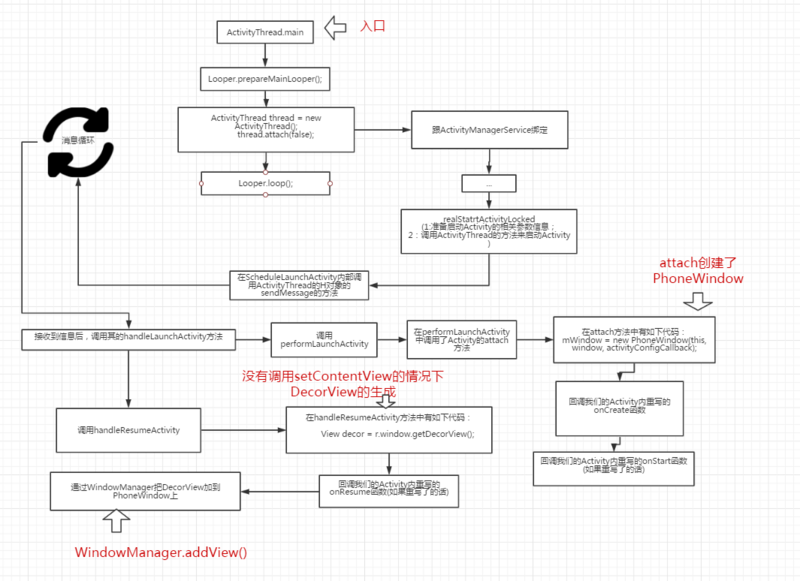 其实上文中已经提到了一些,我们就提到了Activity的创建工作是在android.app.ActivityThread的main函数中完成的。那么我们来分析一下该函数(我们不具体分析源码,太多了),不过我会上图