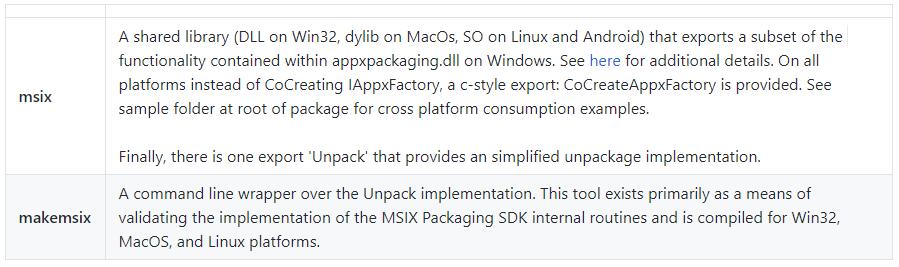 可以看出,它是一个跨平台 SDK,可以让多平台的开发者使用去打包和解包,为了分发到 Microsoft Store 或 开发者自己的内容分发网络。