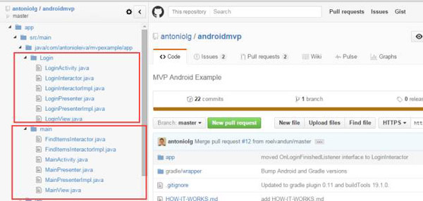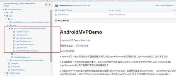 - android mvp github地址(本篇博客正是参考这个项目进行讲解的。这个项目也很简单,分为login和main两个模块,总共十个类,思路非常清晰。学习的朋友可以直接clone查看源码。)