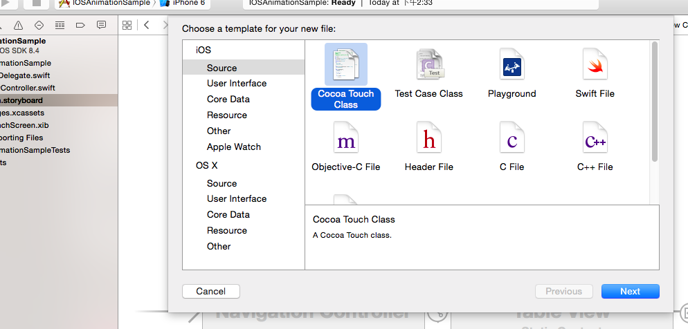 然后继续为界面添加一个普通的View Controller,并且添加前面视图的静态table的转向剪头指向这个View Controller,然后在这个视图上添加普通的UIView