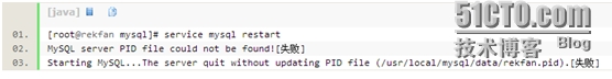 1.可能是/usr/local/mysql/data/rekfan.pid文件没有写的权限