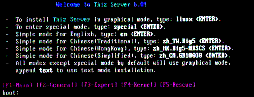 l 直接按【Enter】键,或键入“Linux”后按【Enter】键,可选择图形模式安装Thiz Server;