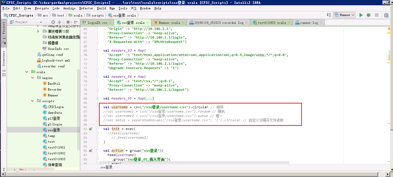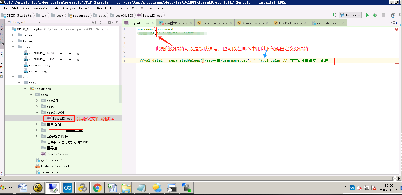 先在src/test/resources/脚本名 创建一个csv格式的文本,目前只使用csv格式文件