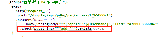 注:使用正则表达式关联,关联的内容要用三个引号包含,注意check前面的点,若是为二级则不需要点