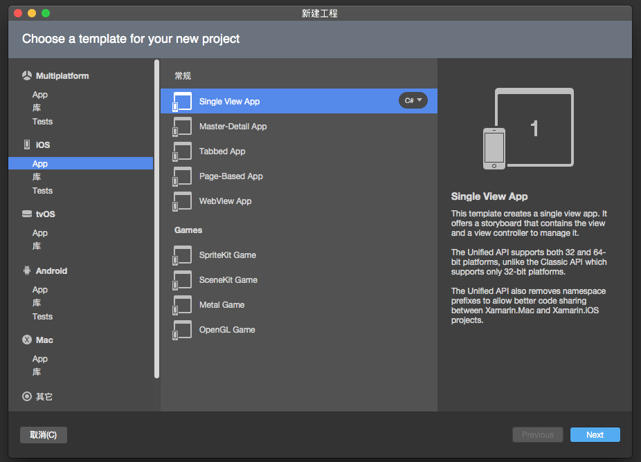 好,接下来,开始我们的第一个工程。这里我们选择Single View App