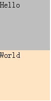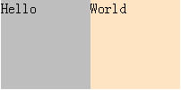 <!DOCTYPE html> <html lang="en"> <head> <meta charset="UTF-8"> <title>Title</title> <style> .div1{ width: 100px; height: 100px; background-color: #bebebe; float: left; } .div2{ width: 100px; height: 100px; background-color: bisque; float: left; } </style> </head> <body> <div class="div1"> Hello </div> <div class="div2"> World </div> </body> </html>
