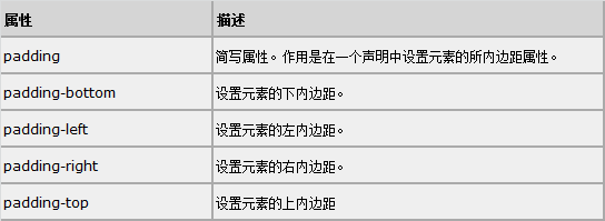 <html> <head> <style type="text/css"> td{ padding-top: 10% } </style> </head> <body> <table border="1"> <tr> <td> 这个表格单元拥有上内边距。 </td> </tr> </table> </body> </html>