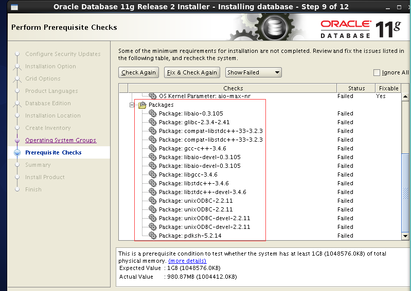 9、Prerequisite Checks 检查安装前提条件