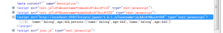 context.Response.Write("{name:'dalong',age:444,persons:[{name:'dalong',age:444},{name:'dalong',age:444}]}"); // 我们返回的内容