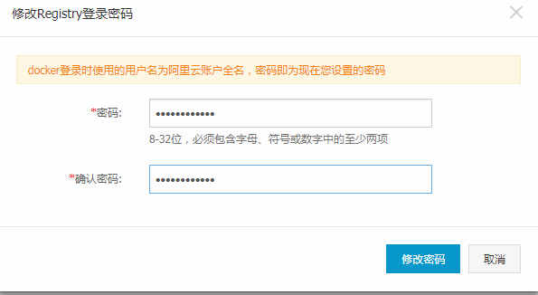 登录容器镜像服务控制台,设置自己的仓库登录密码