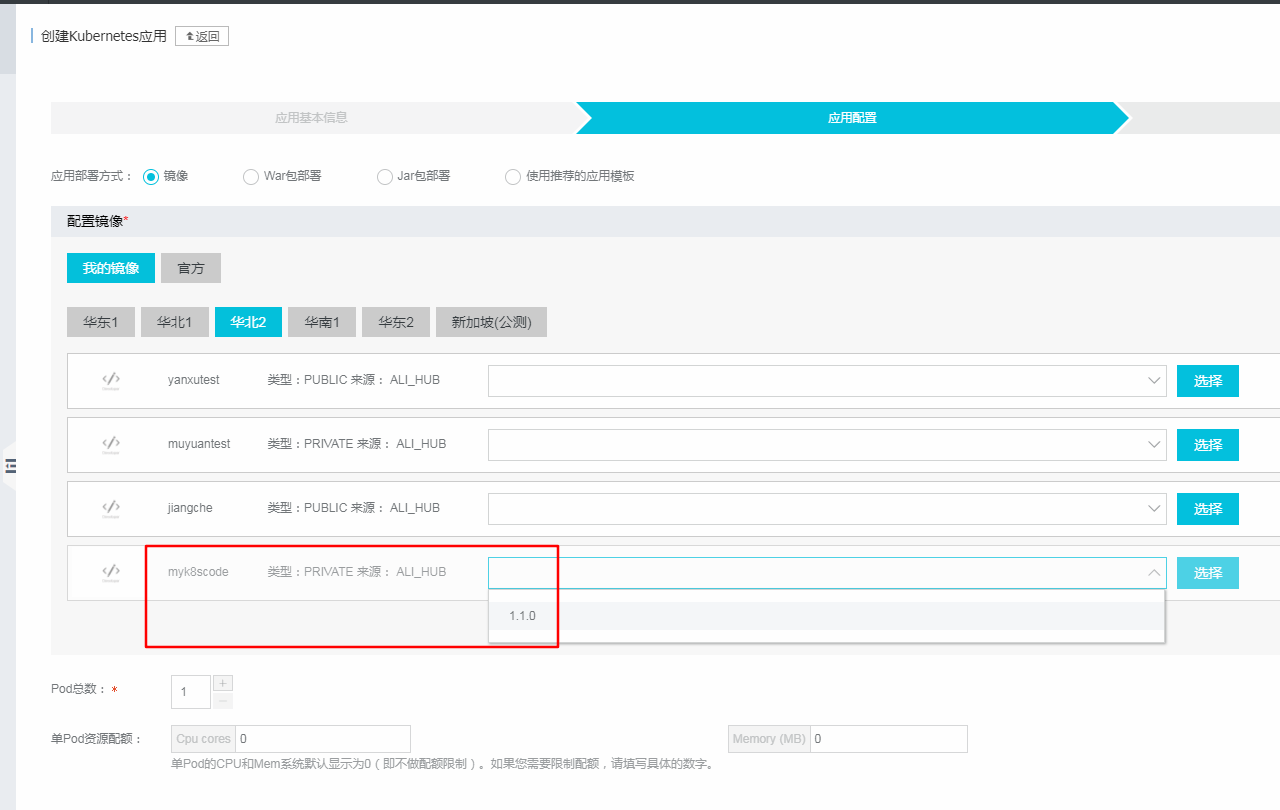 镜像发布完成,再次发布k8s应用时,就可以选择新的镜像了