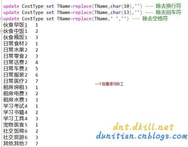 set @sqlStr=@sqlStr+' update '+@tableName+' set '+@cloumnName+'=replace('+@cloumnName+',char(13),'''')' --- 除去回车符