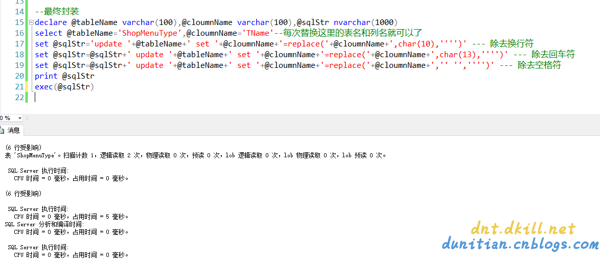 update ShopMenuType set @cloumnName=replace(@cloumnName,char(10),'') --- 除去换行符