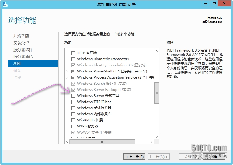 确认windows server backup有没有安装好,因为系统默认是没有添加好的。