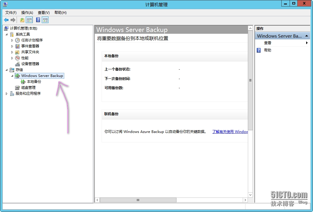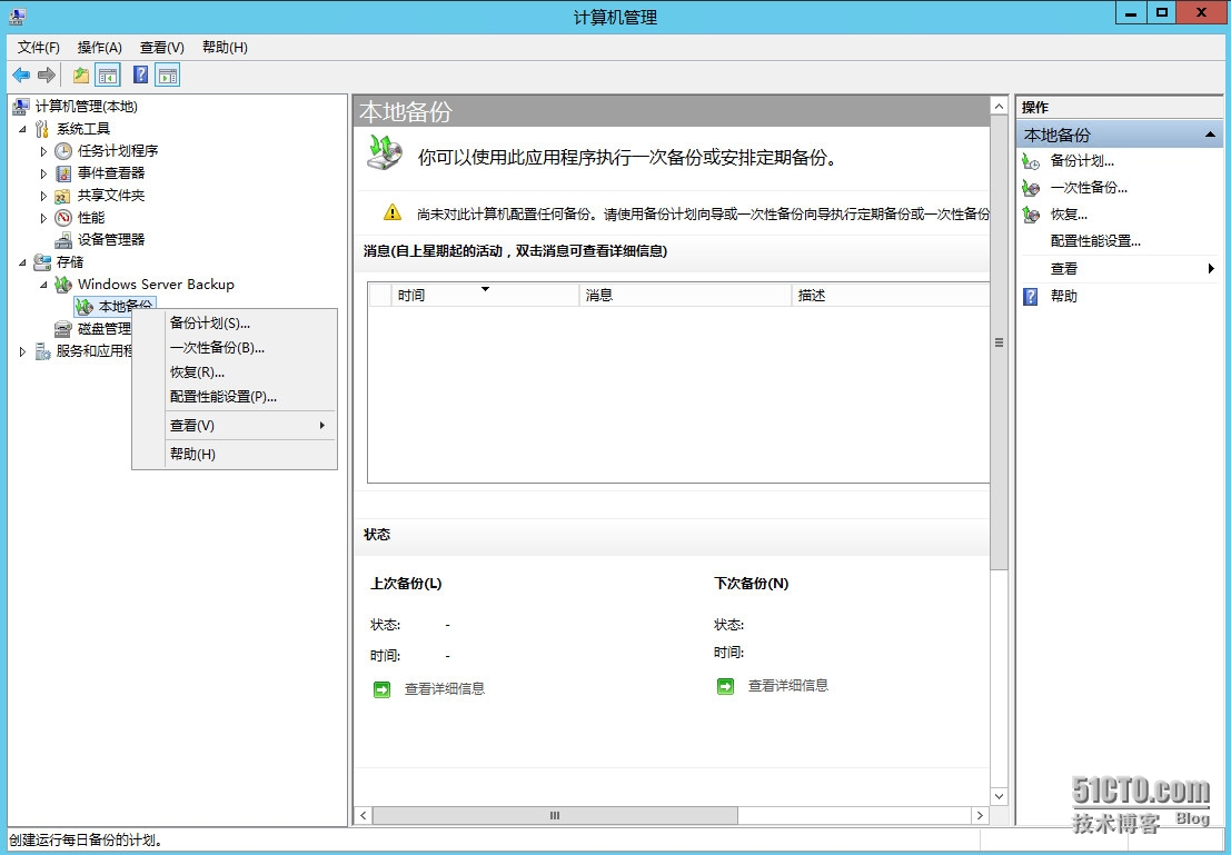 打开 “计算机管理”------- "存储"-----"Windows Server Backup"