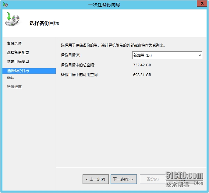 备份目标选D盘或E盘,千万不要在C盘。