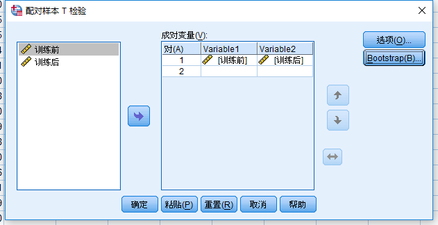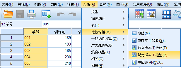 第二步:导入数据,分析-比较均值-配对样本T检验;