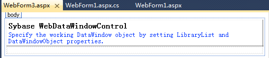 WEB窗体建立好后,就可以拖动工具箱中的Webdatawindow到页面上,如下: