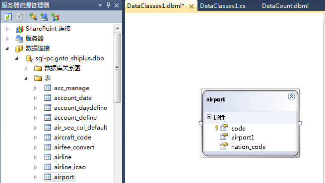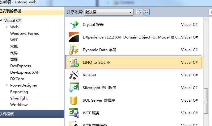 (1)添加一个LINQ to SQL类,名字:DataClasses1