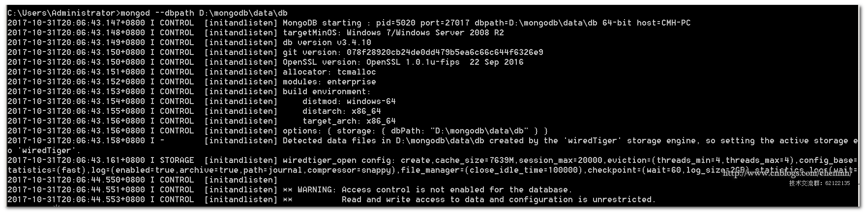 在D:\mongodb目录下创建mongo.config配置文件,配置文件内容如下,这里只配置了数据和日志路径,其它的参数暂时默认。
