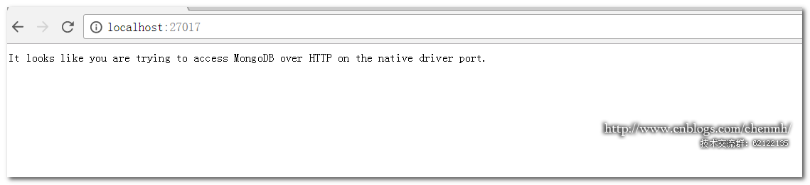 测试服务是否启动,在浏览器中输入localhost:27017;如果没有手动指定端口那么默认端口就是27017