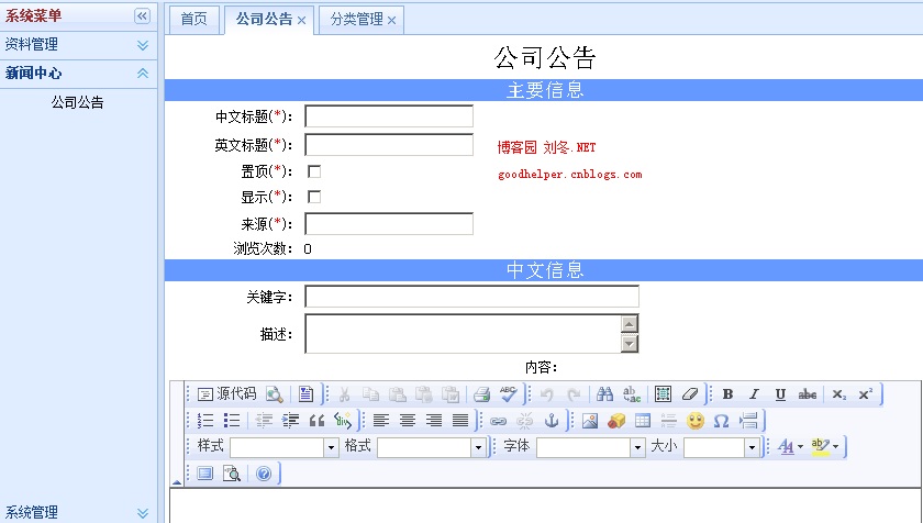 热衷于开源框架探索的我发现ASP.NET MVC与jQuery easyUI的组合很给力。由于原先一直受Ext JS框架的licence所苦恼,于是痛下决心寻找一个完全免费的js框架——easyUI。它有完整的demo和强大AIP手册,使我在开发过程中得心 应手。以下是这篇博文Demo程序的演示效果: