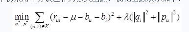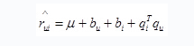 其中最后一项即为我们预测模型中的个性化部分,花括号部分为偏置部分,两个部分相加即得到最终预测评分。