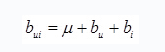 - 训练集中所有评分记录的全局平均数μ,表示了训练数据的总体评分情况,对于固定的数据集,它是一个常数。