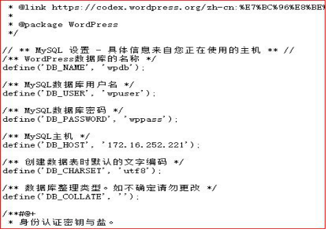 Innodb_file_pre_tables = ON skip_name_resolve = ON 继续编辑/etc/httpd/conf.d/phpMyAdmin.conf文件,修改处: <IfModule mod_authz_core.c> # Apache 2.4 <RequireAny> Require ip 127.0.0.1修改为Require ip 172.16 一共两处 重启mariadb服务,进入mysql,输入以下命令: grant all on wpdb.* to ‘wpuser’@’172.16.%.%’ identified by ‘wppass’; Create datebase wpdb;