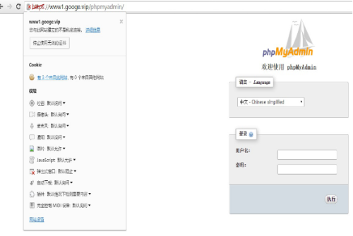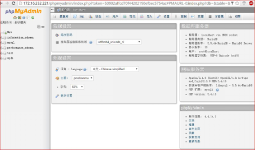 5、浏览器访问http://172.16.252.221/phpmyadmin,登录需要密码,命令输入: