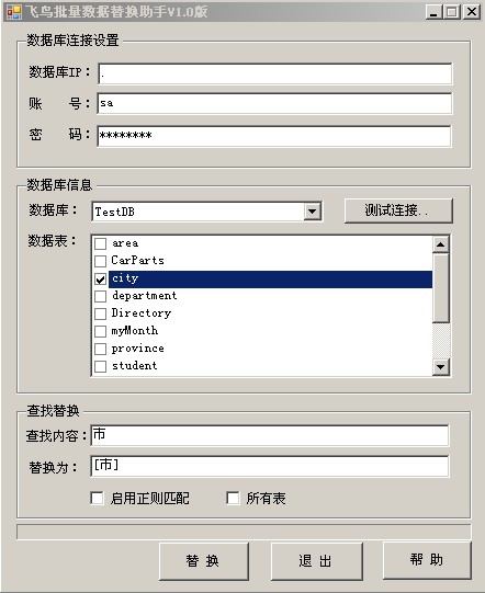 前段时间网站被挂马,数据库表中很多文本字段都被加上了一段js脚本。修复完程序漏洞之后便开始着手清理这些被注入的数据,其间参考了一些网上的方法,大都是写一个存储过程进行一个表一个表逐一清理。这种方法操作繁琐,而且一般不是很懂数据库的人很难操作。于是萌发了要写一个小程序的念头,经过两天时间的折腾这个小软件终于和各位见面了,希望各位童鞋多给点意见。说了这么些之后还是先上界面吧,^..^