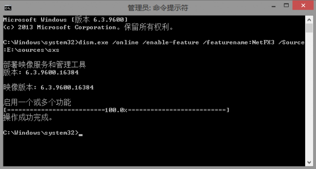 若无原版Win8/Win8.1安装光盘,请前往 http://www.efanyh.com/archives/6593.html 下载合适的Win8/Win8.1光盘映像,下载后双击加载虚拟光驱(也可以使用虚拟光驱软件»下载),记下虚拟光驱的盘符(这里假设为G盘),按 Win+X ,选择“命令提示符(管理员)”,在弹出的窗口中输入“dism.exe /online /enable-feature /featurename:NetFX3 /Source:G:\sources\sxs”,回车即可自动安装NET3.5,安装完了关闭窗口即可。