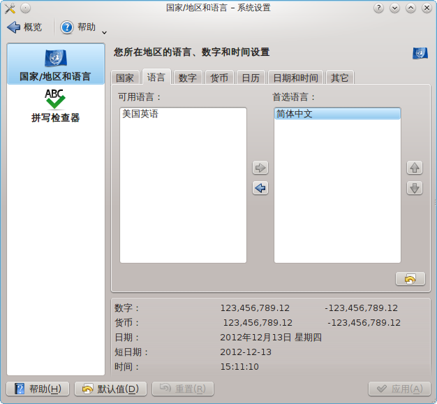 4、computer-system-local,国家选择“中国”,语言选择“简体中文”,注销重新登录系统即可。