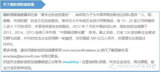 2.来自强大的孵化力量微软创投加速器的支持:凭借优质的初生力量,公司在数以千计的初创公司中脱引而出,成功加入微软创投加速器第三期,获得了微软“人、财、策略、市场拓展”的全方位服务和技术支持。