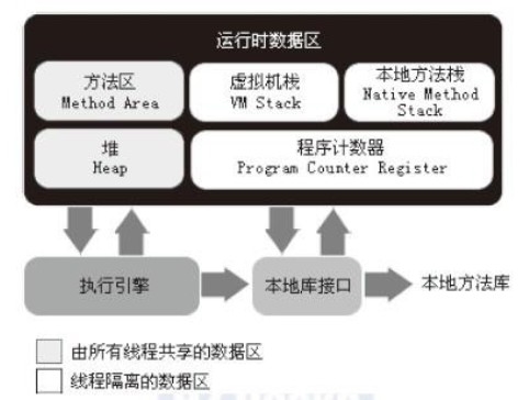 Java虚拟机在执行Java程序的过程中会把它 所管理的内存划分为若干个不同的数据区域。这些区域都有各自的用途,以及创建和销毁的时间,有的区域随着虚拟机进程的启动而存在,有些区域则是依赖用户线程的启动和结束而建立和销毁。根据《Java虚拟机规范(第2版)》的规定,Java虚拟机所管理的内存将会包括以下几个运行时数据区域,如下图所示: