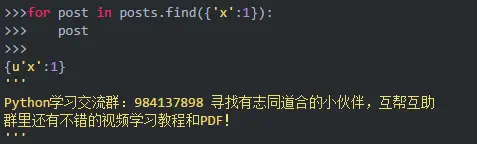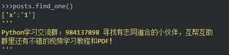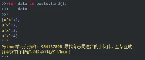 但用find_one()的方法只能获取一个数据,如果数据库中存在多个数据时,它返回的是第一个的值。你也可以通过ObjectId来请求数据,效果和上面是一样的。如果你想打印出全部数据,可以通过迭代的方式获取: