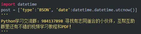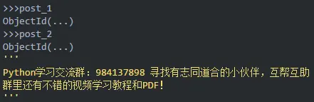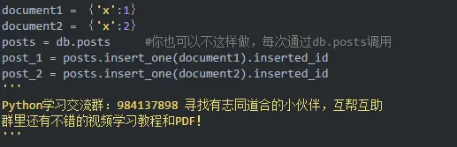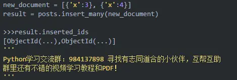 了解完MongoDB的数据格式后,你可以通过以下的方式插入数据(其中.inserted_id将返回ObjectId对象):