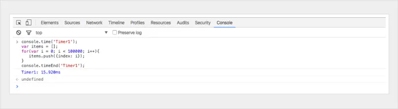 5. 使用 console.time() 和 console.timeEnd() 来标记循环耗时