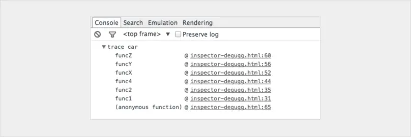 因为 JavaScript 不是一个很结构化的语言,有时候很难完整的了解到底 发生了什么 以及 什么时候发生 的。 使用 console.trace((仅仅只是在控制台中跟踪) 可以方便地调试JavaScript 。